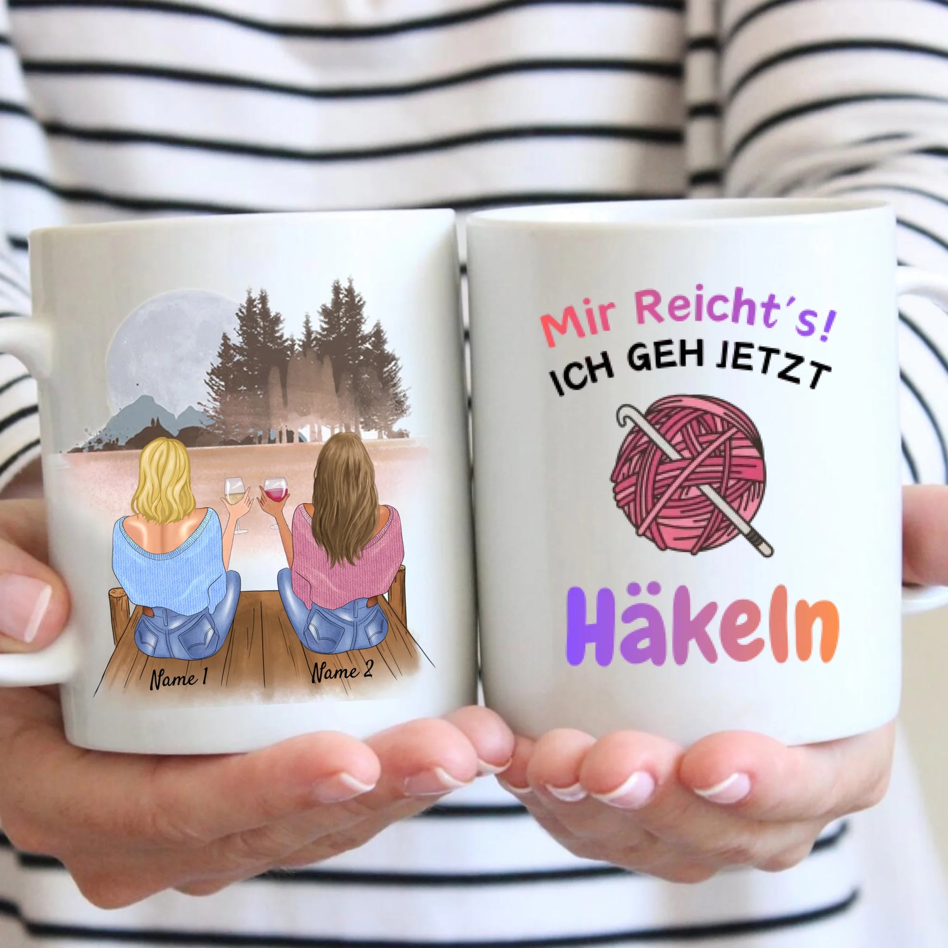 Mir reicht's, ich geh jetzt Häkeln - Personalisierte Tasse (2-4 Personen) für Freundinnen, Kolleginnen, Geschwister, Häkeln & Stricken Geschenk