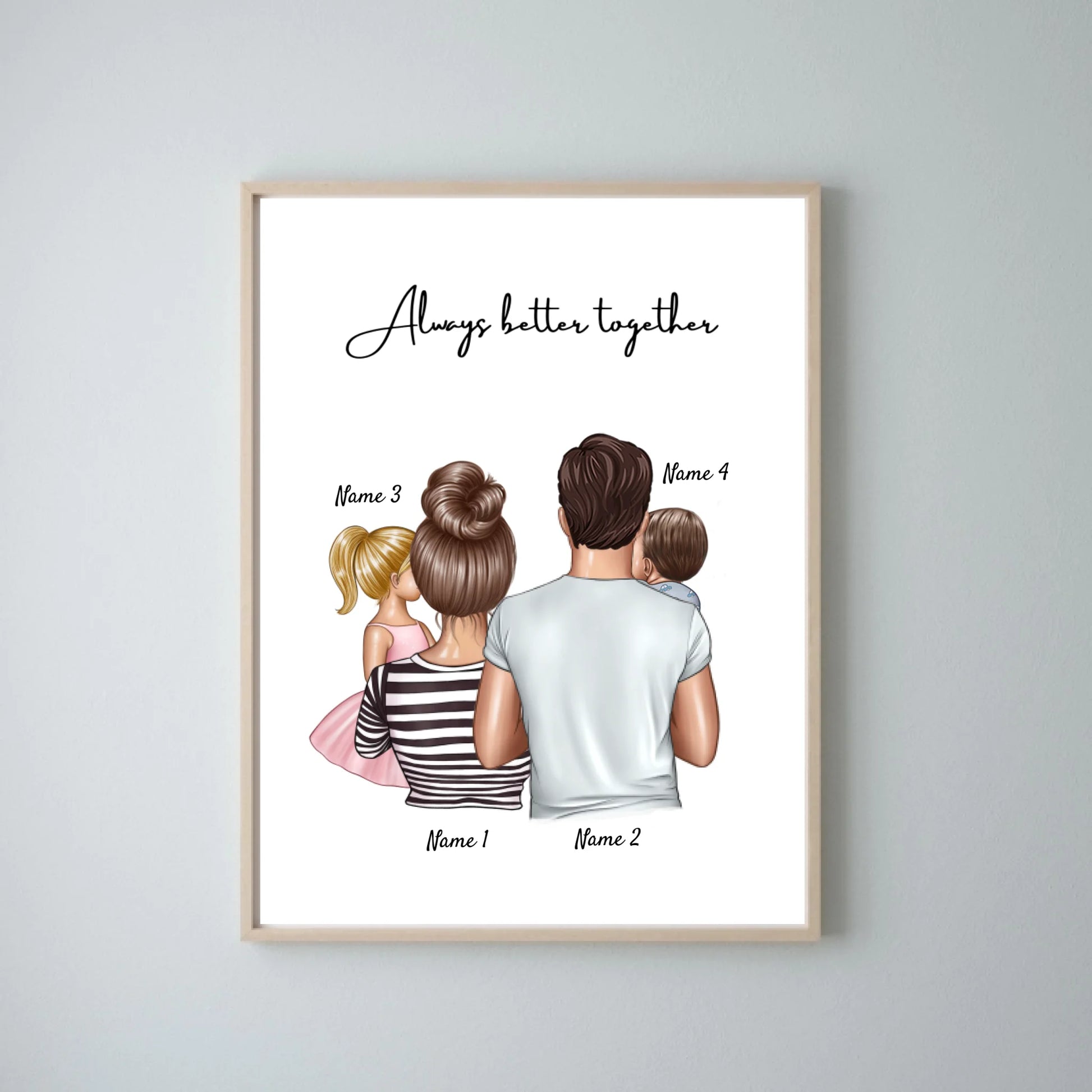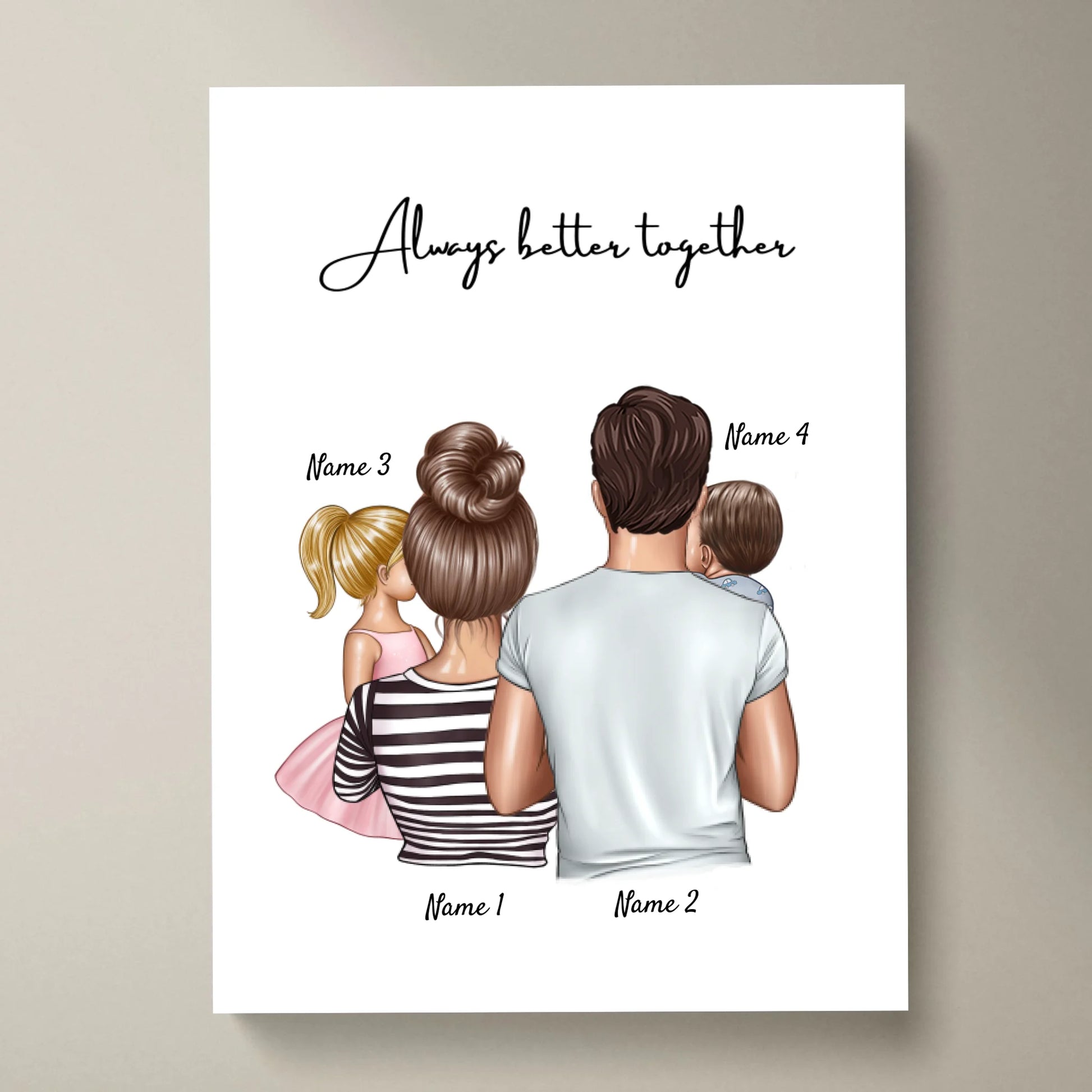 Lycklig familj - Personaliserad Poster (Föräldrar med 1-4 barn)