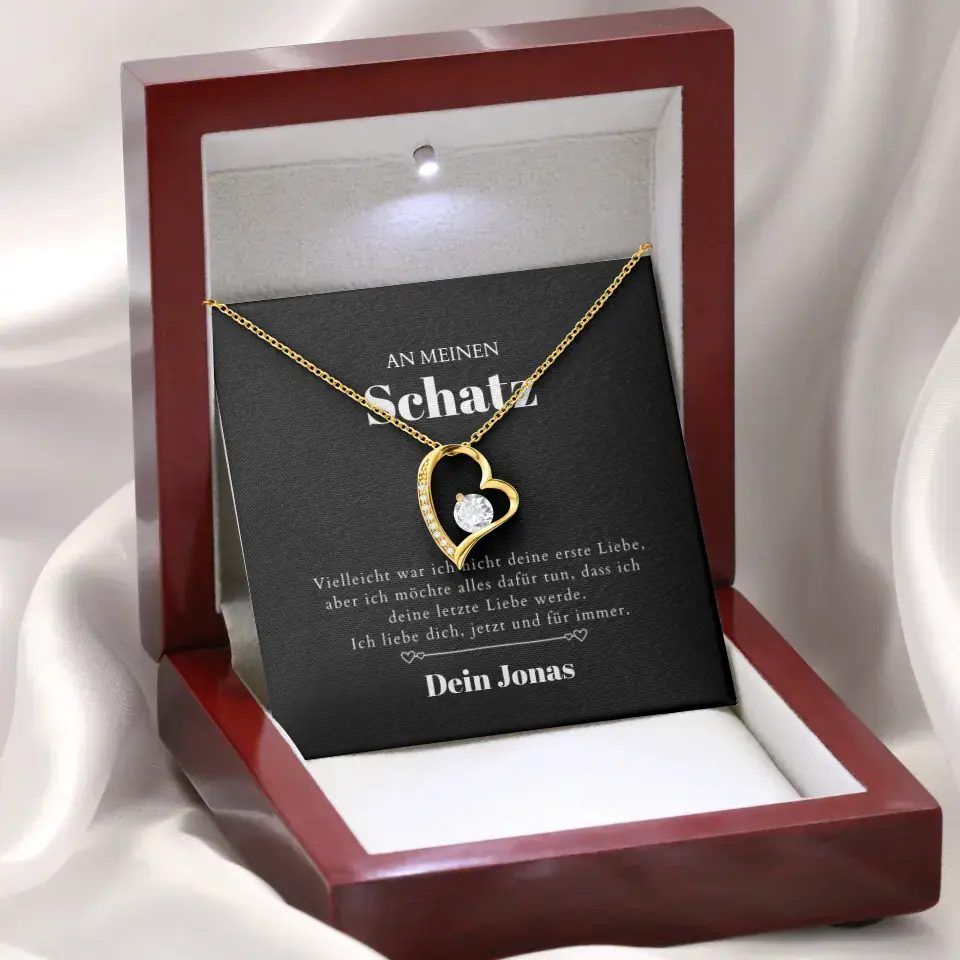 Letzte Liebe - Halskette mit Gold-Herzanhänger & personalisierter Geschenk-Karte (Valentinstagsgeschenk)