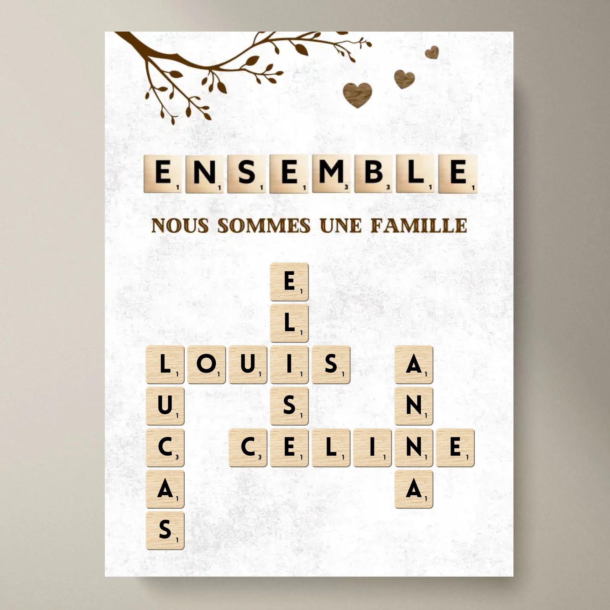Toile de Scrabble personnalisée avec le nom de toute ta famille - Ensemble, nous sommes une famille