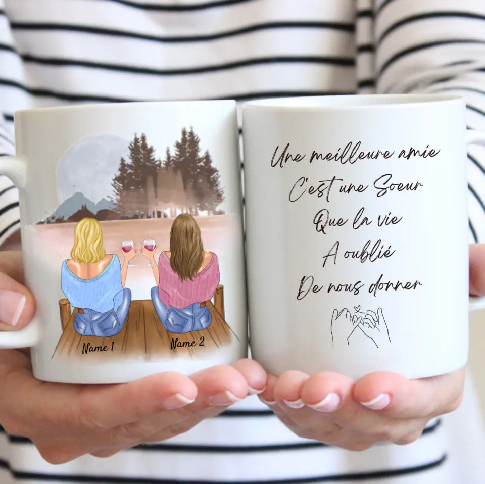 TOUJOURS LÀ l'une pour l'autre, Meilleures amies avec boisson - Mug personnalisé (2-4 amies)