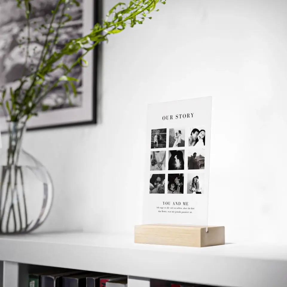 "Vår historia" Personligt parglas i akryl - fotocollage (4-9 bilder)